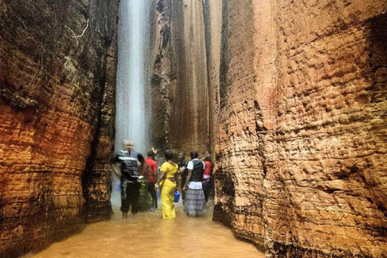 Tucked inside Enugu State’s rolling hills is the mystical Awhum Waterfall and Cave. The waterfall is about 30 meters high, cascading down into a stream that many believe has healing powers. Whether you’re spiritual or not, there’s no denying the calming energy of this place.